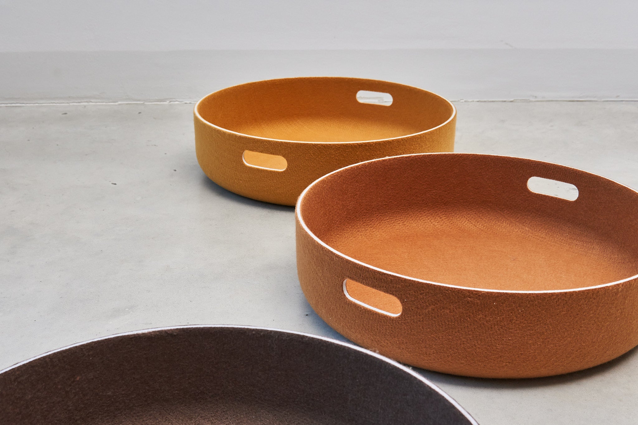 Each Cesto basket is moulded from felt fibres that are mostly made of recycled PET bottles. The sustainable, environment-friendly material holds it’s shape and has a soft yet textural look and feel.