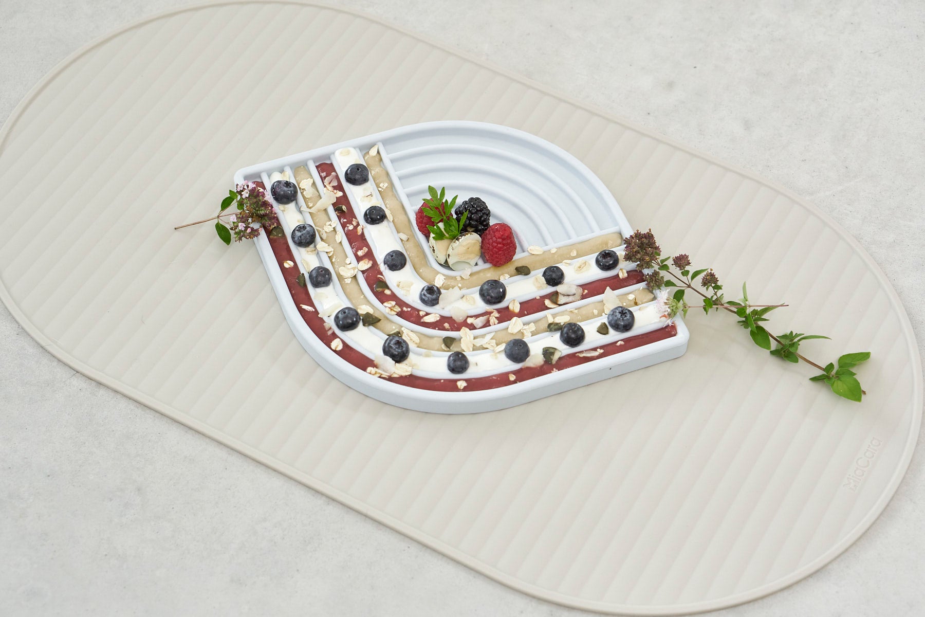 More than just a feeding accessory, Merenda is an enrichment mat for dogs that helps reduce stress and boredom. Whether as a calming distraction during thunderstorms, a quiet activity while you’re working or a way to slow down mealtime, Merenda encourages relaxation and mental stimulation.