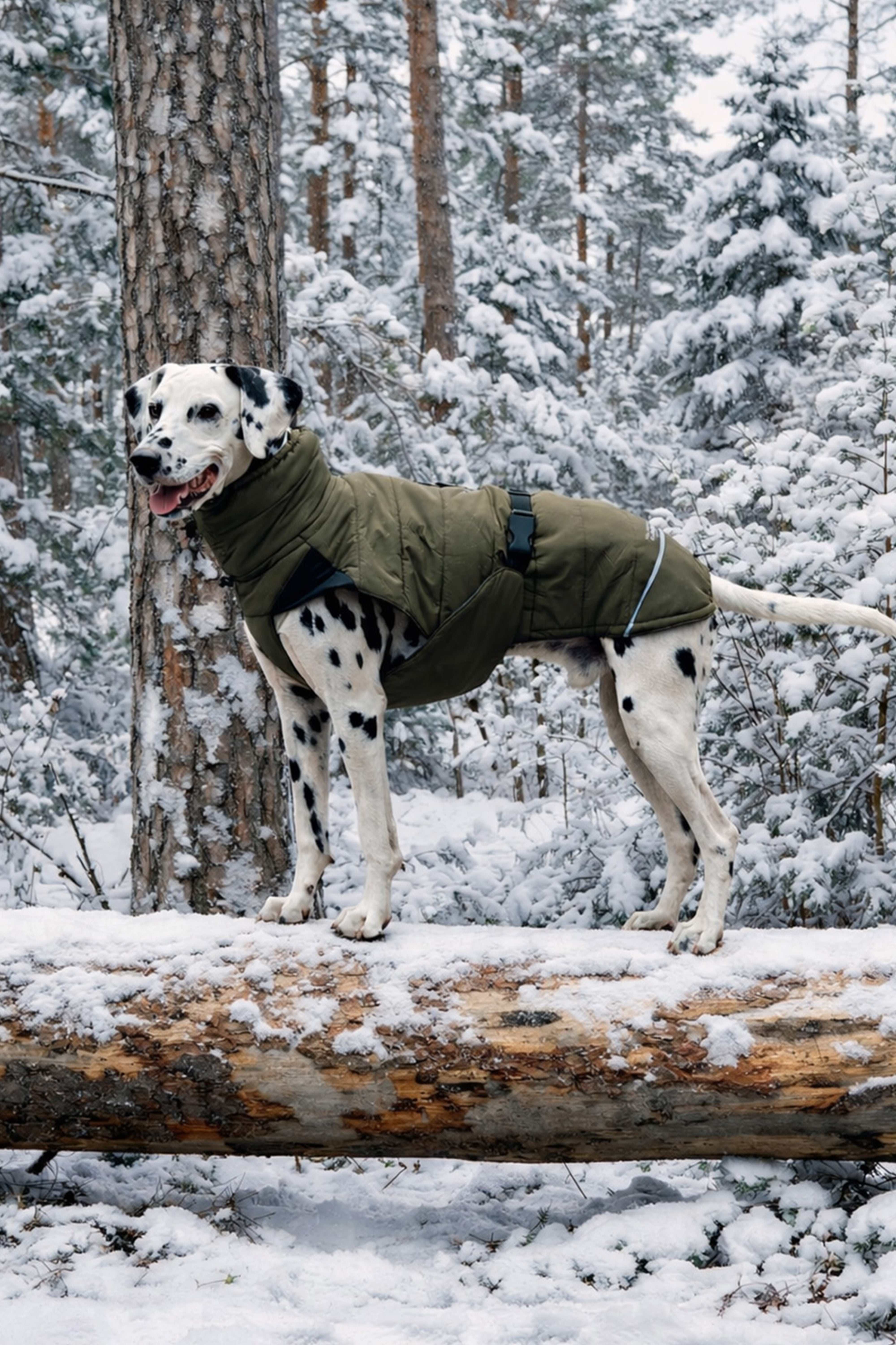Der Mantel überzeugt besonders durch seine Materialien: Der Oberstoff besteht aus recyceltem Polyester und ist wasserfest. Die spezielle Füllung des Mantels ist wärmer und funktionaler als Daunen und schützt Deinen Hund auch bei eisigen Temperaturen zuverlässig vor dem Auskühlen.
